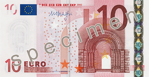 유로화의 도안은 다른 나라처럼 특정 나라의 위인이 아니고 (여러 국가가 포함되어 있다보니) 연합 국가를 통합하자는 취지에서 유럽의 7대 건축 문화 양식이 그려져 있습니다(실제 건축물은 아님).